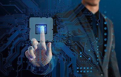 工程師在工廠調(diào)整機(jī)器與集成電路設(shè)計